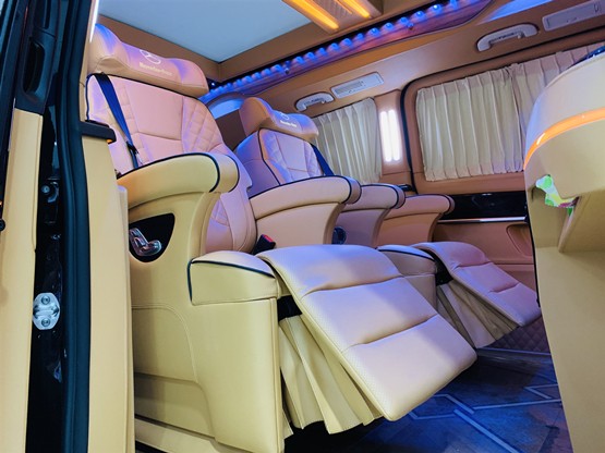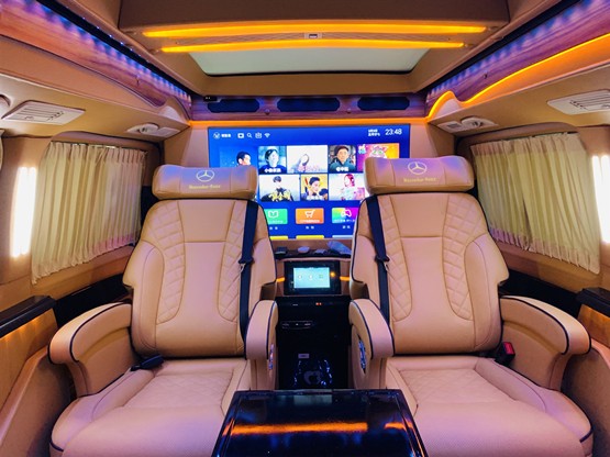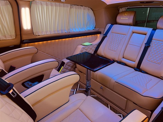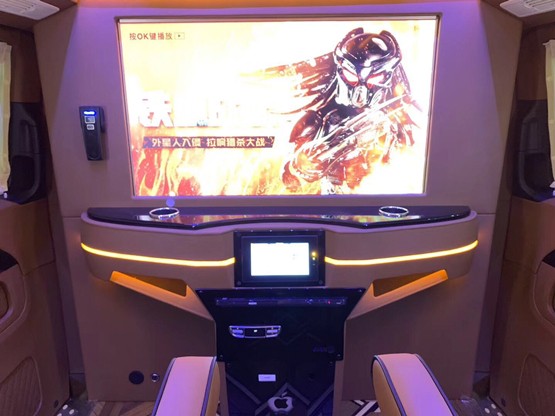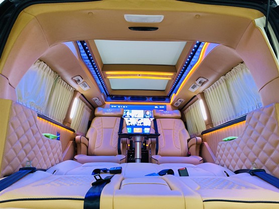 奔驰V260L商务车改装BOSS音响、42寸电动升降式液晶大屏以及下置吧台为商务娱乐的主体,配备有进口胶囊咖啡机与蓝光玻璃酒柜这一类生活性的应用,满足日常的商务休闲需求。座椅边上安置着车厢的小型控制面板,车厢边缘近座椅处,可放置酒杯饮料的凹槽和隐藏储物柜,都是随意伸手可触。