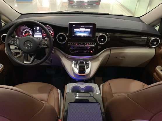 2019款奔驰V260内饰方面做了非常大的调整,一扫之前老款奔驰威霆 (配置|询价)强烈的塑料感取而代之的是真皮包裹搪塞物充足,全部纯手工打造做工十分细致,操控台按键十分的简单,这也是BBA一贯的做风,简单易操作但功能一样都不少,三幅式的多功能光方向盘+电子怀挡,两个多功能的独立航空座椅之间的超大中央扶手箱内置冰箱。