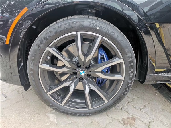 19款宝马X7 3.0T运用最新家族式设计语言,前脸配备面积更大的双肾式主动进气格栅,两侧“天使眼”头灯组造型更为修长,且采用开眼角设计,保险杠中部为贯穿式进气口,并辅以银色饰条加以装饰。车身侧面腰线由前翼子板贯穿至车尾,选用22英寸多辐式铝合金轮毂。车尾造型方正,银色饰条贯穿其尾灯组,且灯组内部集成“C”形灯带,点亮后效果出众,排气为双边两出式布局。