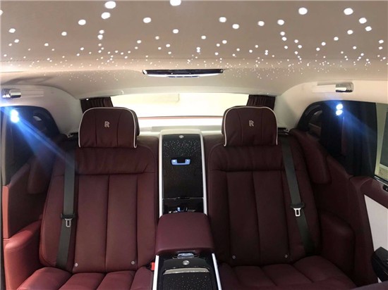 2019款劳斯莱斯幻影后排电动折叠板,和后排影院系统被巧妙的隐藏在前排座椅的椅背后,只需轻触按钮,便可以自如收放桌板和影院系统,带来完美的剧院体验。后排中央固定扶手做了重点优化,其中国可容纳带有威士忌酒具的酒柜、香槟酒具和冷藏箱,方便乘客畅快交谈,后排座椅角度可以任意调节,这一设计让客户无需转头便可视线自如交流。整个车厢内饰全部以最精美的高档材料装饰,使车内极具触感。