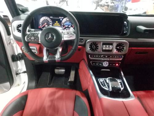 全新奔驰G63 (配置|询价)的内饰极具现代感,中控台出风口、扬声器指示灯的造型与车灯相得益彰。而两块12.3英寸的显示器则让整个内饰氛围升华,还提供了经典、运动、渐进三种模式可选。舒适、科技配置也让人眼花缭乱,包含:驾驶员座椅记忆、前后座加热、多角度调节、座椅按摩(Active Multicontour座椅套装)、AMG多功能方向盘(可控制自适应巡航、语音控制、多媒体控制等)。