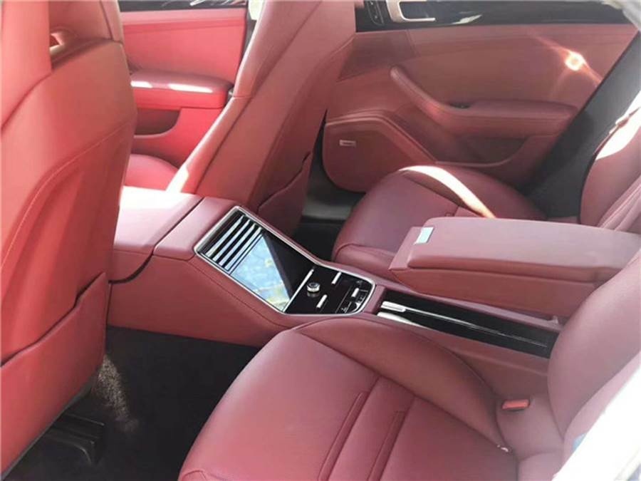 19款保时捷Panamera式仪表盘,具有液晶显示屏的行车电脑显示功能,超大液晶显示屏配有倒车雷达模拟图像。还有可以在每个弹簧中按需提供额外充气量的气动悬挂系统,可自动升起且角度可调的后扰流板,确保了主动空气动力学性能。另外,新一代PCM保时捷通讯管理系统在中控台上整合了尺寸更大的液晶屏幕。 传统位于中控台的空调系统与警示灯等按钮,都转移至排档座区块。众多控制按钮以深色底板辅以细条镀铬的对称排列设计成为保时捷中控台造型的一大突破。
