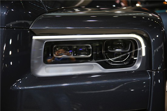 库里南全系标配激光大灯,夜间照射距离可达600多米,其造型也与幻影保持一致,眉”形日间行车灯上方,一条横向的线条贯穿而过,一展气度,前脸给人庄重威严之感。