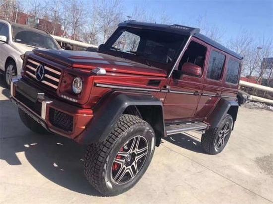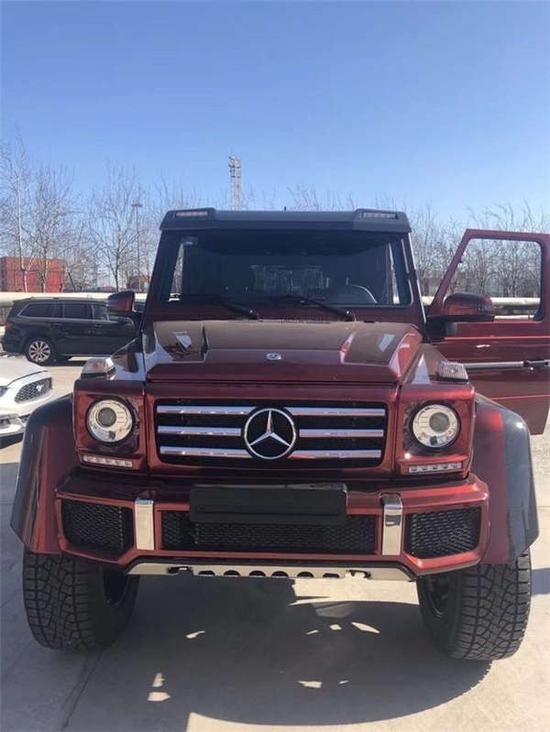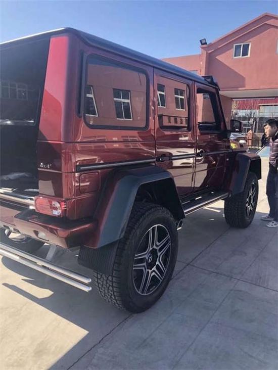 了解了性能表现之后,来看一下颜值。它采用的是黑色的车身涂装设计,看起来非常的具有霸气感。这款车的长宽高分别为4米5、2米1、2米25,轴距则达到了2米85,它比普通版车型的体积大了两圈,更大更宽的车身令它变得更加平稳,更高的离地间隙则令它的通过性变得更强,虽然体积变大了,但它整体采用的依旧是经典的奔驰家族式设计风格,可以说,这就是个放大版的方盒子。
