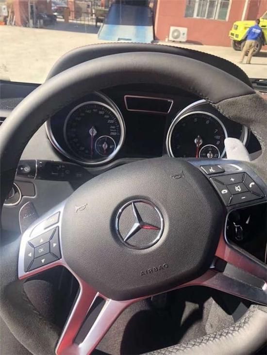 前脸部分,横幅的进气格栅中央镶嵌着奔驰的车标,两侧是经典的双圆灯造型,这里配备的是氙灯与日行灯,点亮后的效果是非常不错的。下面它配备了AMG包围,车底还采用了不锈钢的双车底保护,视觉上给人更强的运动感与性能感。还有个比较有意思的设计是,它采用了一个车顶碳纤维扰流板的设计,并配备了LED上雾灯,提升性能感与辨识度的同时也令整车看起来多了一定的个性感。