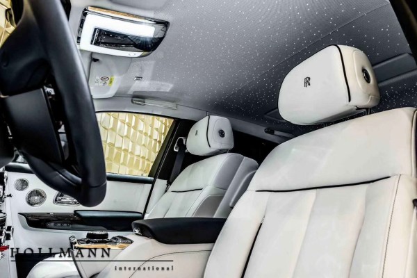 前后门板都采用了高档真皮包裹,而此车的把手、中央扶手都有加热功能,更别提什么座椅加热了。新幻影依旧采用了对开式车门的设计,不过这一次在外边也可以自动关门了,这倒是个细节上的认真。
