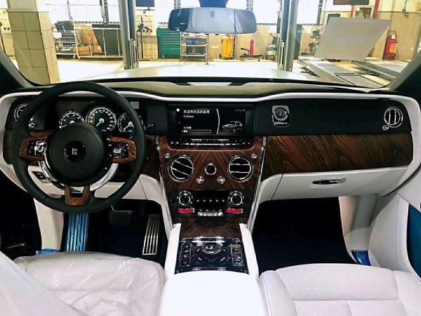 库里南的内饰遵循了劳斯莱斯一贯的设计风格,造型经典复古但不失科技感,大量实木饰板的采用,提升了内饰的档次感。而大面积真皮包裹的设计,则成功的营造出奢华舒适的内饰氛围。仪表盘的设计较为古朴,内部指针清晰可见,外圈还配备有劳斯莱斯珠宝般的装饰环。方向盘沿用了经典的三辐式造型,但是整体设计更加小巧、厚实,并且内部包裹有可加热的柔软材质。