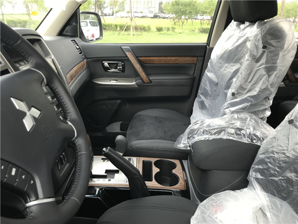 三菱帕杰罗内饰设计简约平实,大面积银色的装饰面板、高亮度银色外环仪表盘、上深下浅双色调处理的中控,局部使用的深色桃木材质。电动车窗控制面板装饰扩大了银色面板,座椅也更换为三维绒布材质。