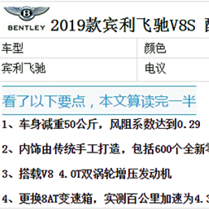 2019款宾利飞驰V8S令很多人神往,给大家一组参数介绍: