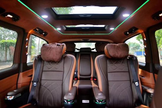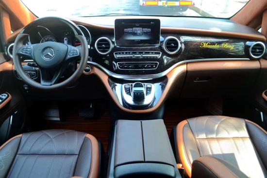 奔驰V (配置|询价)260L:5370x1928x2140(七座高顶无隔断)2.0T涡轮增压高功率发动机、7速自动变速箱增强版、流线遁形高顶、车身彩条设计、柏林之声5.1声道高保真音响系统、 二排IPID娱乐系统、二排航空座椅(通风、加热、按摩及旋转)、三排一体式沙发床(可整体放平)、氛围灯系统、空气净化器、手窗帘、双侧防夹电动门。