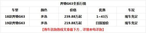现车价格行情,全新19款奔驰G500 (配置|询价),G63,G63先行特别版,颜色现车价格有惊喜,接受预约特殊颜色,G500、G63可分期售全国。第一时间为您从奔驰官方调整配额到您手中,Mercedes-Benz梅赛德斯。奔驰全新G级,纯进口奔驰G500、G63持了纯朴无华的复旧气势,在经典中穿插当代。但筹划更加凸起的前保险杠、全新的侧后视镜和轮毂造型,让其显得越策动感和拥有攻击性。增加时行的LED白天行车灯计划,而尾部根基无扭转,留存了其一贯结实的打算风格。