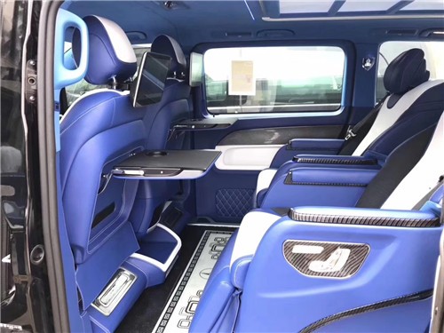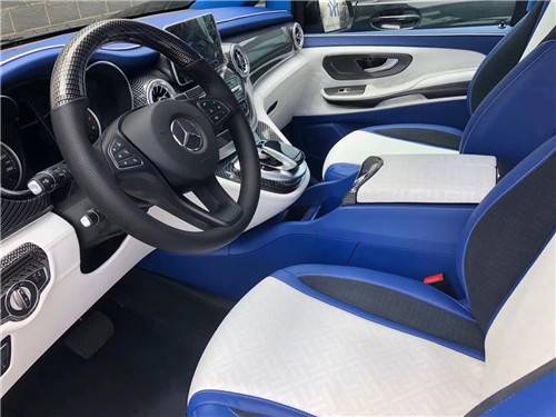 2019款奔驰V250改装放纵的自由,满足商务接待、洽谈、出游等的需求使用,从配置上来说,2019款奔驰V250改装后座三连排电动沙发座椅,向后拓展可一键平躺变身奢华大床,商务出行可作为休憩佳所,合家出游首选。黑色网状的进气格栅显动力和无限实力,奔驰V250外观中间闪耀的三叉戟依旧在表明高贵身份。