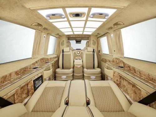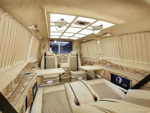 奔驰v250改装商务车配置:电子影音设备;一键式超静音40寸高清液晶升降电视; 220v电源接口USB多功能连接口;贵宾舱奢华隐藏式冰酒柜;车载触控屏中控系统(人机交换系统);智能隐藏储物柜;智能隐藏式极具现代化奢华酒柜;一键式电动升降雾化隔屏;德国原装进口内置集成调光器阅读灯内饰商务配置;豪华手动伸缩隐藏航空铝镁合金铝制小桌板;全车豪华紫檀木装饰;贵宾舱紫檀木地板;后排奢华原装进口一键式记忆电动折叠航空首长席(加热,通风,气动按摩);四季实用透明环保地膜;全车立体大包围。 实用型进口304不锈钢衣钩。 后舱电子雾化窗帘。隐藏式豪华书报架。