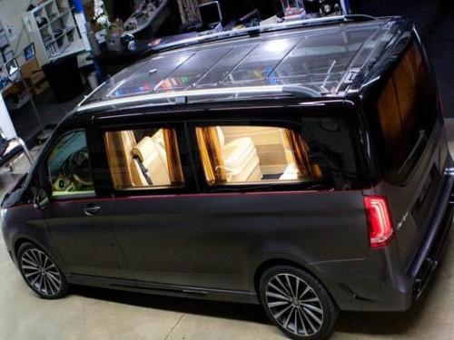 进口奔驰V250 商务车改装电动天窗可为乘客提供明亮、温馨的车内环境。天窗可电动开启,让人在旅途中更加亲近自然。遮阳帘可抵御强光的照射。在加配清凉系蓝色棚灯,让您欲罢不能。
