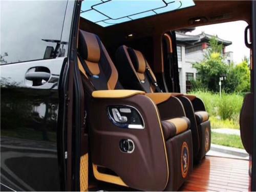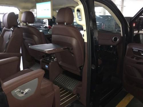 2019款奔驰V250 2.0T汽油 5.37米进口奔驰V级采用经典的2+2+3的七座布局,是为数不多的可以将第一排座椅后方的所有东西全都拆下来,并且地板完全平整的MPV。中排座椅可旋转与后排形成对坐,形成商务洽谈的模式。它的后排车厢也非常宽敞,即便是把两排座椅都往前移动,在原有的1030升的行李舱空间升级为1410升,设计相当人性化。