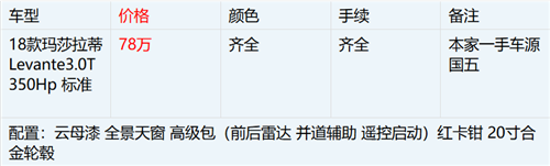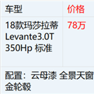 2018款玛莎拉蒂莱万特最新优惠行情如下所示: