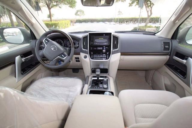 2019款酷路泽5700VX 白车米内 [可选黑内]天窗,底挂备胎,七座,8速,8气囊,18轮,138L油箱,巡航定速,中央锁定,冰箱,桃木内饰,丝绒座椅,一键启动,桃木内饰,,自动调光可折叠后视镜,主驾电动座椅,多功能方向盘,前雾灯,后雾灯,镀铬前格栅 ,黑踏,前2后4雷达,前小杠