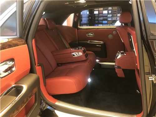 19款劳斯莱斯古思特加长版车身与车轮高度2:1的比例,平直高耸的腰线,让整车侧面看上去无比尊贵,看上去给人一种无比尊贵的视觉享受。经典的对开门设计,采用一对向后开的后门,内部可以舒适的容纳五名成年乘客。该车的内装非常简洁,控制键的数量大幅减少,重要的功能键表面都采用镀铬装饰以起到提升作用。