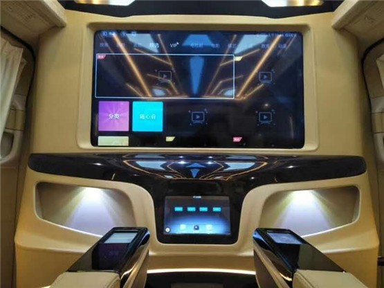 中央的首长席座椅多功多样,包括有多向电动调节、腿托、前后旋转等。两张座椅皮质与填充物方面都以舒适为主。上面的缝线也相当细腻,首长席折叠电脑桌闪耀,后排除了正常容纳三名乘客非常宽松的乘坐之外,还能将其完全放平。