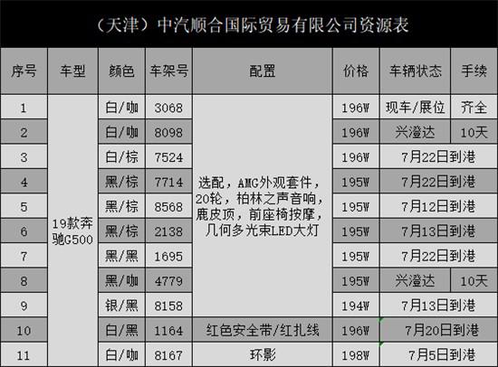 19款奔驰G500也有中规进口和平行进口两种,AMG外观包,驾驶辅助包,泊车辅助包,Designo尊享内饰包,动态多仿形座椅,柏林之声高级音响,几何多光束LED大灯,极地白外观漆等等,这种选装配置,与新款G63 (配置|询价)基本一致,时一种最流行的选装方案,叫G63配置。