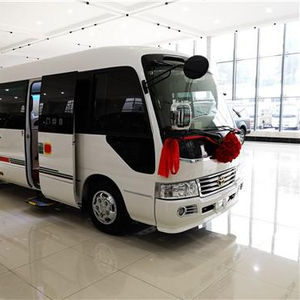 国产柯斯达17座中巴车 改装现车北京有售,改装是为了更加美观更加舒适或者更能彰显一种尊贵的身份。丰田考斯特在内饰的改装上更加注重尊贵的衬托,高档的豪华座椅暂且不说,自动调节的百叶窗帘也无需再提,就拿车载的影音系统来说,我们完全可以依靠自己的需要设计符合我们需要的车载影音系统,高清的显示屏,专用的麦克以及高级的扬声器设备,随时随地带给乘车人员一种舒适的享受。