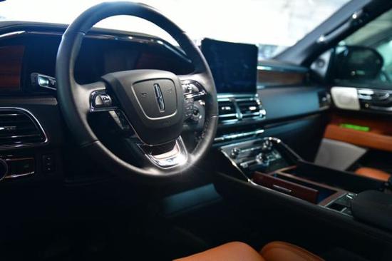 林肯领航员新款三幅式多功能方向盘带加热功能,真皮包裹方向盘兼具温润触感与典雅质感,三幅式设计令操控更加得心应手,在尊崇气息之上平添一分动感魅 力。真皮部分可在短时间内加热,即便在寒冷的天气状况下,也能保持对温度的掌控感。内饰豪华气派,做工精细。车内大量皮质和实木材覆盖,让人即刻尊享定制体验。新款林肯领航员采用12英寸全液晶的仪表盘,悬浮式显示屏,科技感十足。