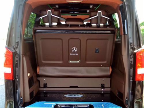 2019款奔驰V250改装放纵的自由,满足商务接待、洽谈、出游等的需求使用,从配置上来说,2018款奔驰维特斯外形尺寸5370*1928*2100,配备2.0T211马力L4发动机,功率达(千瓦(马力)/转速)155KW211PS/5500,保持商务稳重的同时动力也足。2019款奔驰V250改装后座三连排电动沙发座椅,向后拓展可一键平躺变身奢华大床,商务出行可作为休憩佳所,合家出游首选。