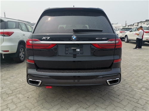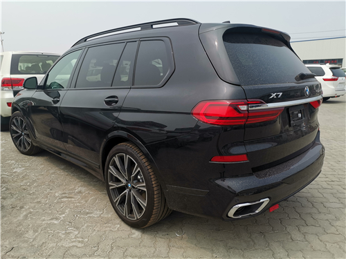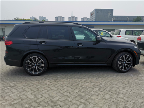 全新宝马X7采用宝马全新家族设计,双肾的进气格栅面积相当庞大,细长的大灯组采用开眼角的设计,使新车横向视觉感受更宽。新车灯组内部布局精致,配备了矩阵式激光大灯,点亮后效果可佳。新车在前杠下方的设计格外有气势,配上镀铬条的融入,显得新车有着十足的豪华感。