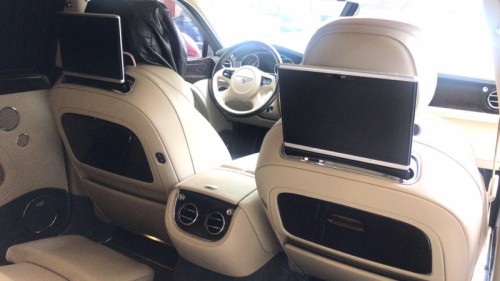 配置:穆勒包(21轮,车门带穆勒字样门槛嵌饰板,铸币式表面车门把手,宾利徽章头枕刺绣, 后侧化妆镜饰面环绕),优选包(金色飞翼小人,宝石机油燃油盖,遥控车库门开启装置,泊车钥匙),舒适包长轴距版(航空躺椅,座椅通风按摩,舒适型头枕,阿尔卡塔纳鹿皮头枕靠垫),暗色伯尔核桃木实木饰条,全尺寸中控台配两个可活动小桌板,后排小桌板,内饰情绪灯,6碟播放器,宾利影院--双10.4寸自动折叠平板电脑带地图