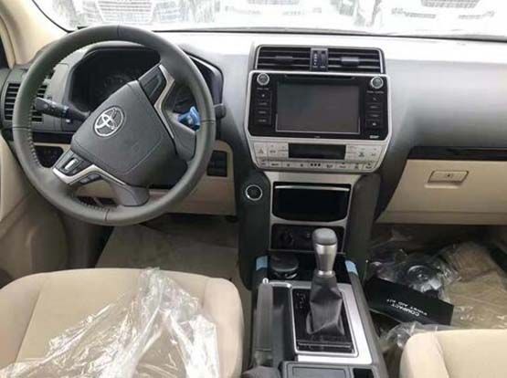 19款丰田霸道 (配置|询价)4000 配置:7座、中控锁、冰箱、真皮方向盘、真皮座椅、一键启动、地毯、动力转向、电动车窗、双驱恒温空调、前排电动座椅、音频AM/FM/CD/AUX/USB/蓝牙、6个扬声器、多功能方向盘、9寸导航屏、后挂带备胎罩、车身同色门把手、车身同色后视镜(带电镀条)、车门后视镜-电动/折叠、车顶扰流器、智能卡、前LED雾灯、踏板、自动大灯调节(高低)、18寸合金轮、银色行李架、天窗、镀铬后视镜装饰、镀铬后门照盖装饰、镀铬侧门防刮条、前保险杠护栏、遥启、LED日间行车灯、大灯清洗、镀铬中网、防抱死系统、制动辅助、电子制动力分配、车身稳定系统、后雾灯、胎压监测、主动牵引力控制、中央差速锁、坡起辅助、陡坡缓降、儿童座椅安全装置、前后倒车雷达(6探)、巡航控制、9气囊、倒影。