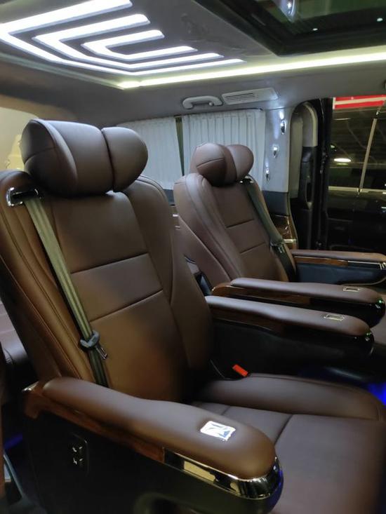 2019款奔驰V250改装放纵的自由,满足商务接待、洽谈、出游等的需求使用,从配置上来说,2018款奔驰维特斯外形尺寸5370*1928*2100,配备2.0T211马力L4发动机,功率达(千瓦(马力)/转速)155KW211PS/5500,保持商务稳重的同时动力也足。2019款奔驰V250改装后座三连排电动沙发座椅,向后拓展可一键平躺变身奢华大床,商务出行可作为休憩佳所,合家出游首选。
