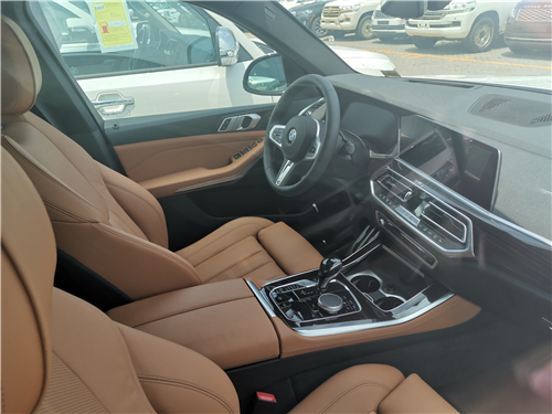 内饰上,全液晶仪表盘十分亮眼,并且还要求配备了真皮的方向盘,握感也不错。中控台上方采用了搪塑工艺的软包材质,而在门板位置,这是皮质的包裹,另外车内的座椅全都是真皮的材质,所以这款车型是目前来说最走量的一款。新款宝马X5通过中央控制器和控制显示屏,直观简洁地控制各种舒适和娱乐功能。新车独特的i-Drive系统可以提供诸多信息,使驾驶员在驾驶中更方便的控制车内系统。真皮座椅很柔软,乘坐舒适,前后排座椅都装备了加热和通风功能。宝马X5车内彰显出强健的气魄和全面的道路适用性。真皮的多功能方向盘手感极佳,宽大的中控台简洁流畅,多功能电动驾驶座椅舒适性十足,整车采光效果十分出色。