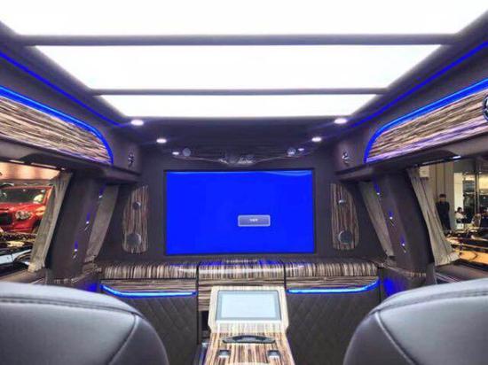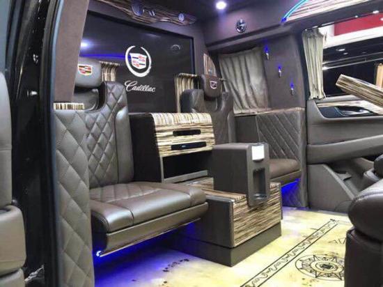 凯迪拉克总统一号隐藏六座商务车内饰部分:舱内隔断:可升降分隔屏,32寸超薄液晶电视 音响设备:BOSS环绕音响,DVD 舱内灯饰:氛围灯 LED灯饰。