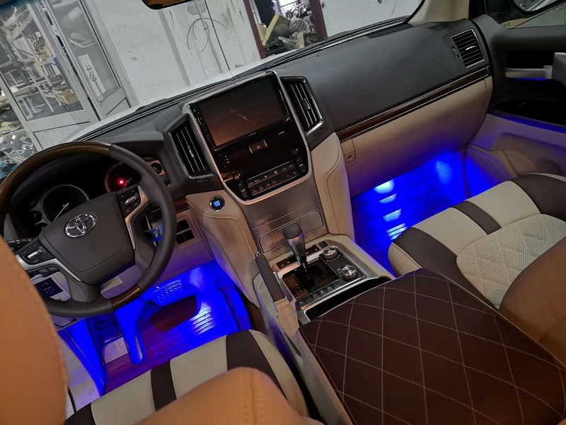 大屏导航是改装的,因为原装的是中东文的没有用处,基本上都会改装这个大屏导航,改装的专用的座椅加热通风,加了一套脚窝灯。