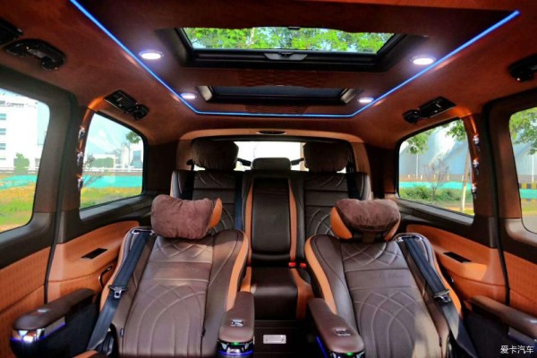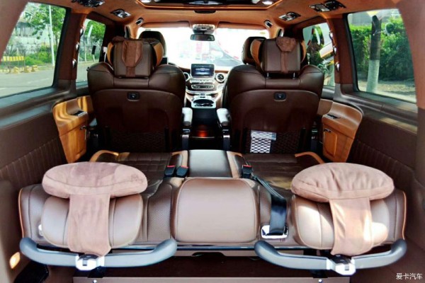 冰箱、电热水壶等。看来这辆车并没有刻意的去营造科技与奢华感,反而更以使用为主。当然了,既然被称作豪华商务车,那么办公设备自然不能含糊。吧台旁边座椅前方设有一个可折叠的小桌面,充份考虑到乘客使用笔记本电脑、写材料、用餐等需要,非常人性化。在小桌板边就是隔屏吧台控制系统面板,可以控制车内氛围灯、热水器、、隔屏升降、插座供电等。款进口奔驰威霆商务房车就如行走的希尔顿酒店。奢华舒适惬意。乘坐在奔驰威霆希尔顿的房车里。我们更能领略到精致典雅的真谛,感受生活的美好。一起来感受希尔顿的美好理念。航空座椅,座椅背部与座椅腿托均采用电动调节,功能可以左右侧同时开启,也可以单独开启,肩部、背部、腿部不同程度的,让精力更快恢复。