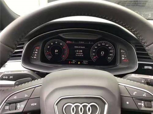 19款奥迪Q8奥迪全新家族化设计,科技感十足的虚拟驾驶舱氛围,同样的三块大屏,横向贯穿的前排空调出风口,中控台采用大面积的真皮包覆,且向驾驶员一侧倾斜,形成以驾驶员为中心的驾驶舱。