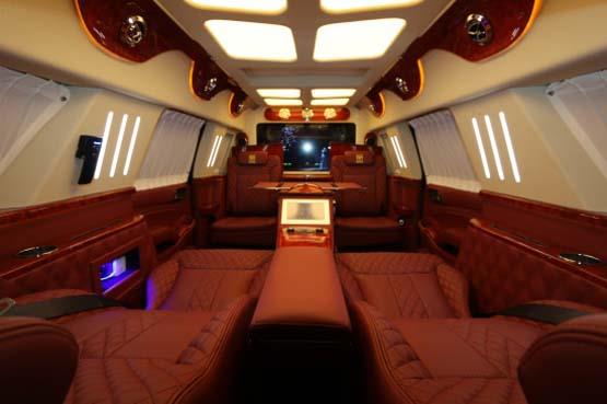 林肯领袖一号总长5米98,车高2米1,坐在车舱里不会觉得很压抑,我们的林肯领袖一号配置了R22寸轮毂,全车大包围,前后保险杠,以及车尾金色踏板和车头金色车标,林肯领袖一号很有贵族气息!