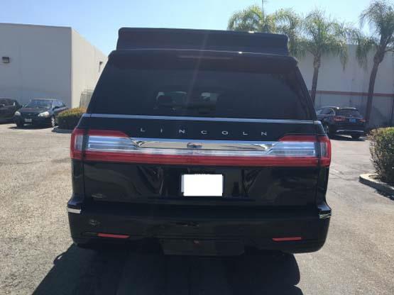 林肯领袖一号安全方面:防弹后尾门为您报价护航 后尾门防弹玻璃 总厚度20mm以上 金属的撞击也只能将玻璃击碎而不能穿透 最大限度保证后排乘坐安全 是领袖一号的最终使命!