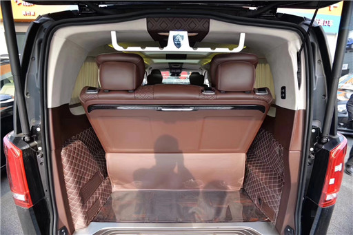V250商务车乘客舱第二排多功能座椅,可旋转,并带有脚托功能,舒适乘坐,附有加热、通风、电动调节、腿托、按摩、记忆、电动头枕、电动靠背等功能,座椅支持180度旋转。三排座椅电动调节三连座设计配合旋转的二排座椅可以变成一张舒适的双人床,如果单独打开第三排座椅也可以变成一张供您休息的超大单人床。为您的长途行程提供充足的睡眠。