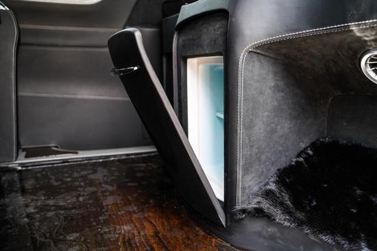 地台的设计采用了紫檀木的地板,典雅中又透露着尊贵,同时吧台也采用了貂绒的脚拖无处不透露着这款车的奢华。