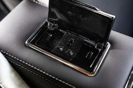 中央扶手还配备有220V电源以及两个Type-C借口的设计,同时还配备有无线充电功能,为后排乘客提供了极大的方便。