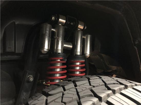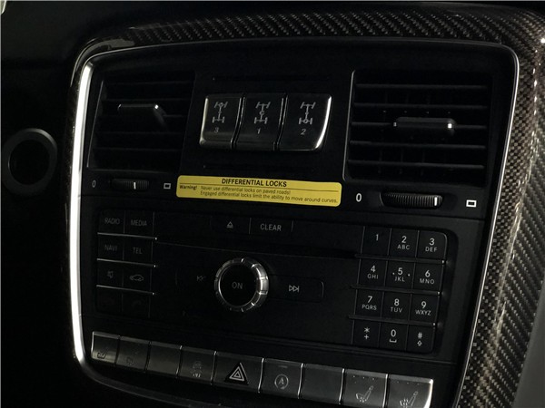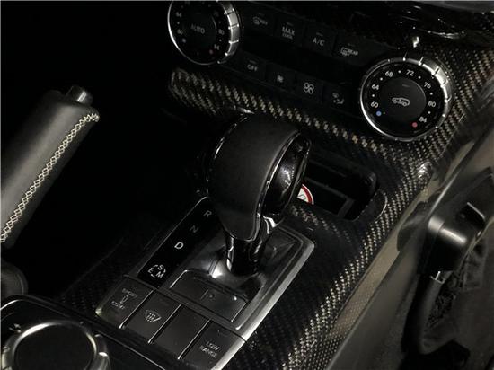 中控部分采用的是碳纤维装饰,这令车内直观给人以运动粗犷的设计感觉。多功能方向盘兼容了蓝牙与定速巡航功能,并配备了换挡拨片,操控感极佳,中控部分可以找到大家最爱的三把差速锁,这一设计也可彰显出此车的越野性。