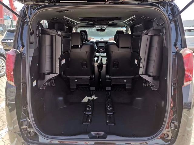 配置2019款丰田埃尔法3.5L尊贵版,黑/黑 欧规 外商自带分段式全景电动天窗、双侧电动门、盲点监测、前/后雷达、定速巡航、ECO驾驶模式、发动机启停、自动驻车、ABS防抱死、刹车辅助、上坡辅助、牵引力控制、车身稳定控制、自适应大灯、LED大灯/日行灯/雾灯、后视镜电动调节/折叠/记忆/加热、无匙进入/启动、彩色行车电脑显示屏、高级真皮座椅、前座椅电动/记忆/通风/加热、副驾驶腿托/后排可调节按键、二排航空座椅带腿托/通风/加热/小桌板/飞翼头枕、后排液晶屏幕、JBL音响、16色彩色氛围灯、车内LED阅读灯、防眩目内后视镜、后排遮阳帘、三区空调、桃木方向盘加热、Nanoe细微水离子空气净化、电尾门、后扰流尾翼、后感应雨刷、隐私玻璃、18寸铝合金轮毂