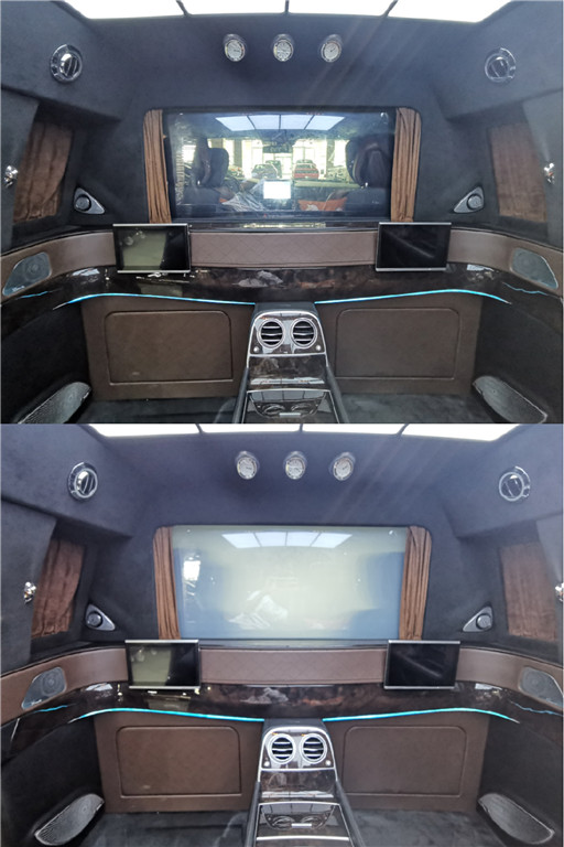 林肯领袖一号极尽奢华的内饰会又会让所有的车迷折服。中控各种功能按键功能齐全手感好。车内的奢华完全可以与私人飞机相媲美了。林肯领袖一号内饰采用桃木搭配设计,高贵典雅,车门拉手按键力度适中,在细节各处都体现了一个豪华车的品质。