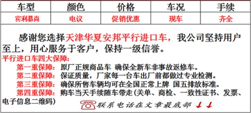 [本公司承诺,凡在天津华夏安邦国际贸易有限公司购买的车辆,提车当日手续随车带走,保证全国均可。如因车辆问题无法,无条件全额退款!!!]