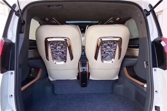 整车采用了灰色作为主色调,座椅以及门边搭配了经典的编织纹皮,低调又不失奢华,这台车最与众不同的地方就是它的星空的车顶和天窗,特别的精致;侧窗部分最大的亮点就是采用了雾化玻璃和遮阳帘的设计,既保证了私密性,又可以随时观看车外的场景,所有的电控系统,都可以在航空座椅中间的触控屏上进行操作。
