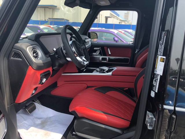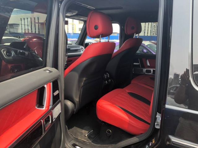 2019款奔驰G63 (配置|询价)内饰保留了新G500 (配置|询价)的整体设计,除配色差异外,新车还换装了全新造型的平底式AMG运动方向盘,其两侧配以打孔皮质包裹,下部镀铬装饰的造型也与新G500明显不同,看上去十分战斗。此外,全液晶仪表盘+中控大屏的双12.3英寸屏幕设计在新车上也没有缺席,营造出了浓郁的科技感。