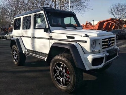 配置:4.0T(汽油)V8发动机,7速,门式车桥,AMG包围,加高加宽的车身,氙灯,日行灯,黑色翻毛皮内顶,碳纤维内饰,前排座椅加热带通风,翻毛皮和真皮双拼座椅和方向盘,换挡拨片,座椅记忆,碳纤维轮眉,车顶碳纤维扰流板带LED上雾灯,黑色车顶,,不锈钢双车底保护,可调悬挂,22轮,前中后三把差速锁,哈曼音响,红卡钳,打孔刹车盘,小天窗, 倒影,踏板。