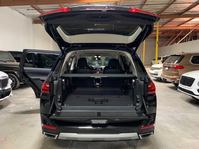 新车的造型设计起来是非常霸气,进气格栅依然采用家族式设计,进气格栅内部采用的是镀铬设计,这样的设计凸显整车的大气。。车身边线特别光滑,没有水拖泥的感觉。22英寸多辅助铝合金轮毂看起来非常霸道。汽车后部有一个巨大的后备厢盖,细长的尾灯和分离挡板,可以通过电子方式打开和关闭。新车三围5151x2000x1805mm,轴距3105mm,对比奔驰GLS (配置|询价)的5130x1982x1860mm,轴距3075mm,两个尾灯中部使用了一根镀铬条连接起来,而且左边上方的X7样式也表明这款车的身份,整体看上去是非常具有这个运动感的。