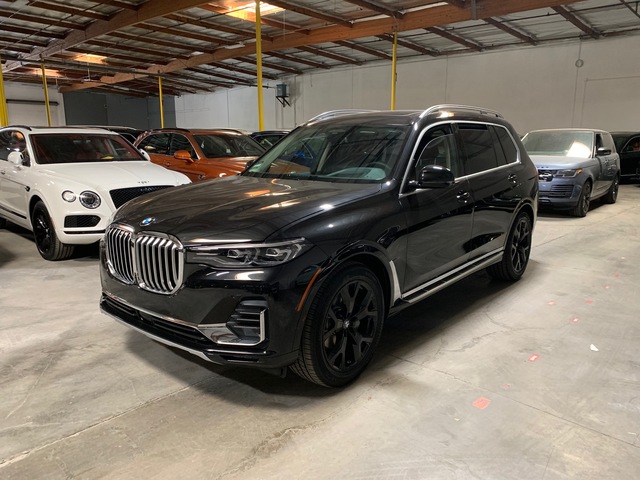 19款宝马X7 (配置|询价)外观方面,全新宝马X7不仅延续了宝马家族式的设计,也添加了不少全新的设计,车头宽大厚重,前脸标志性双肾型进气格栅做了加大处理,直瀑瀑型中网周围包裹宽大的饰条,不仅辨识度高攻击力也是非常强的,两侧连接大灯组,外观做了开眼角处理,上下两条LED日间行驶灯做了上下眼眉,两组大型的远近光灯被箭头式造型勾勒,下面的进气口采用大嘴式设计嘴角连接L型雾灯区,有种嘴角上翘的而感觉,远远望去非常有威严。